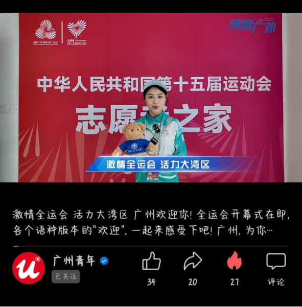 十五运会广东赛区执委会、广东共青团、广州青年等官方视频号转载