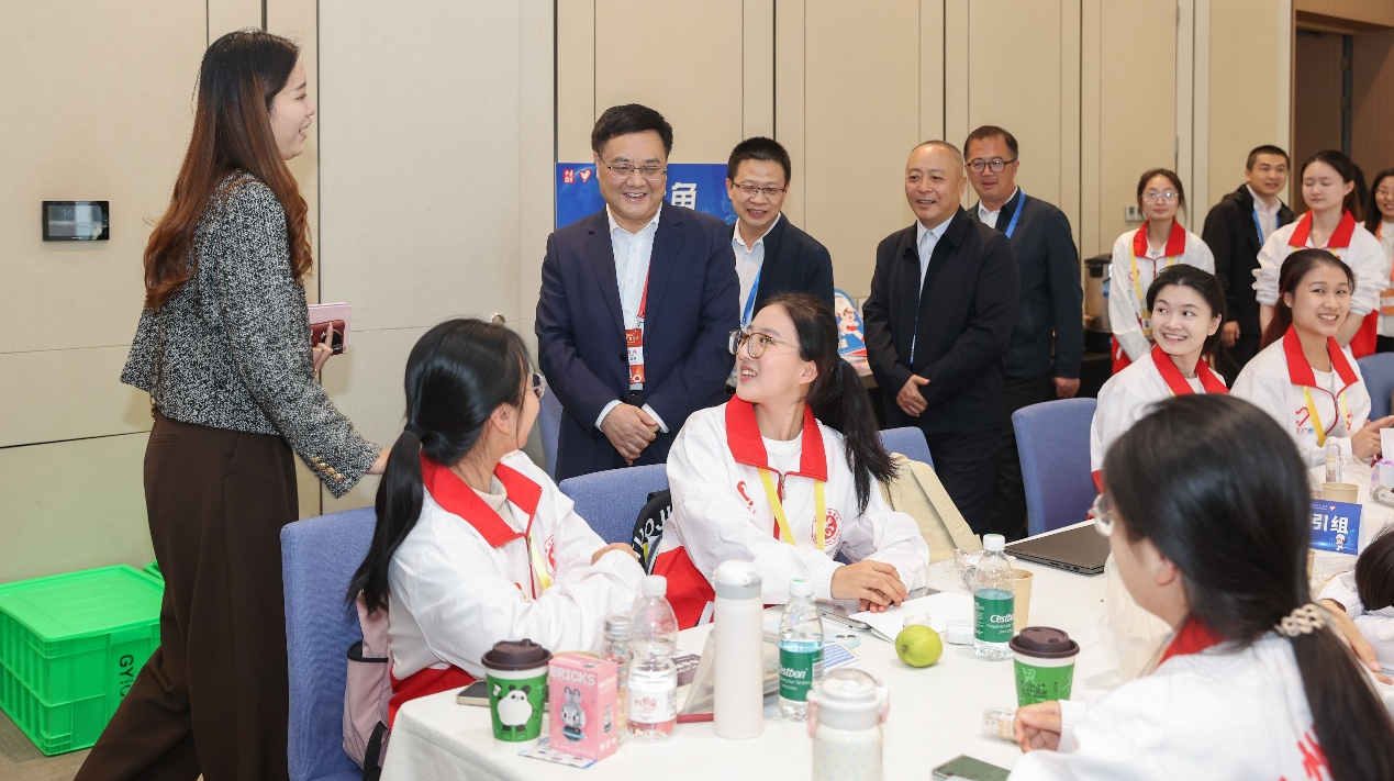 12月1日,校党委书记石佑启,校党委常委、副校长杨励,校团委校园文化部部长吴怡老师等前往服务点位慰问在岗志愿者。石佑启书记与志愿者深入交流,勉励大家发挥多语优势,展现广外学子的国际视野与责任担当。共青团广州市委副书记杨翊翀,广州市志愿者行动指导中心副主任吴帆,项目联络部部长黄璇也到场慰问,高度认可志愿者的高效服务与严谨态度,肯定学校在志愿服务组织保障中的扎实成效。
