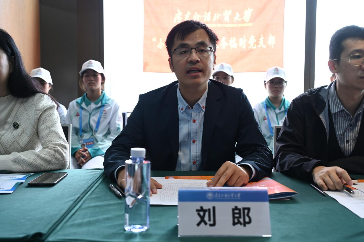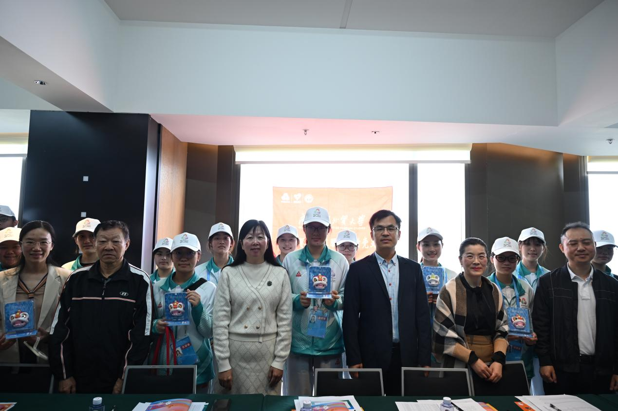 庾月娥副部长高度认可我校志愿者的专业与热情,肯定学校在志愿服务组织保障中的扎实成效。她指出,广外“小海豚”志愿者们以专业的服务素养、饱满的精神状态、暖心的人文关怀,为残特奥会注入了蓬勃的青春活力。学校在志愿服务组织协调、岗前培训、后勤保障等方面的扎实工作值得充分肯定,为赛事的顺利推进提供了有力支撑。随后,参会人员为志愿者代表赠送“小海豚”纪念品。校团委副书记赵继伟、商英学院党委副书记杜焕君、西语学院党委副书记魏少娟、教育学院党委副书记罗诞铖、中文学院党委副书记吴俊峰、信息学院党委副书记董婷、翻译学院党委副书记李政鸿、公开学院党委副书记曾继平、残特奥会志愿者领队老师吴怡、卓智勇、赵正苗参加调研座谈。