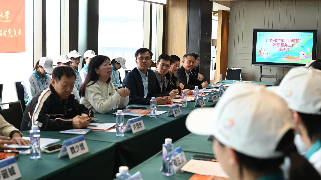 葛小月副书记在座谈会上对全体 “小海豚” 志愿者致以最诚挚的问候与最殷切的勉励。她强调,大型赛事志愿服务是锤炼品格、增长才干的宝贵实践课堂,更是展现青年担当的重要舞台。希望志愿者们珍惜这一难得的锻炼机会,继续发扬吃苦耐劳、勇于担当的奋斗精神,在服务过程中深刻感悟残疾人运动员的拼搏意志与生命力量,将这份宝贵的精神财富转化为自身成长的不竭动力,充分展现广外学子的青春风采、责任担当与家国情怀。