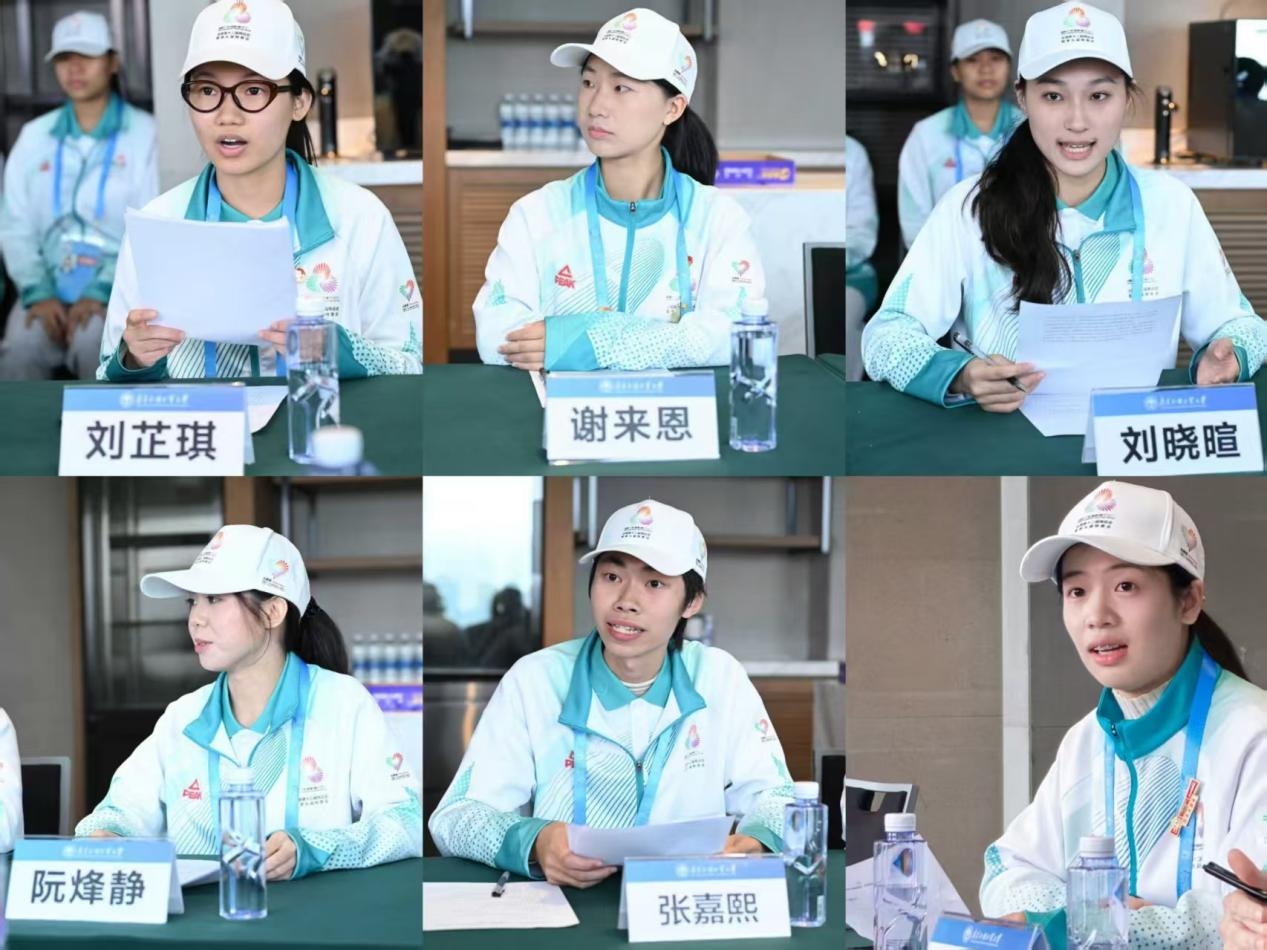 座谈会上,校团委刘郎书记整体介绍了我校残特奥会志愿者的上岗情况和学校的工作开展情况。残特奥会“小海豚”志愿者中文学院刘晓暄、英文学院阮烽静、英教学院谢来恩、信息学院杨家欢、公开学院刘芷琪、张嘉熙作为各个岗位的志愿者代表,分享了自己在残特奥会服务的心得感受。志愿者们感谢学校创造的服务机会和提供的各方保障,纷纷表示将带着学校的认可与鼓励,以更饱满的热情、更专业的态度圆满完成后续服务任务。