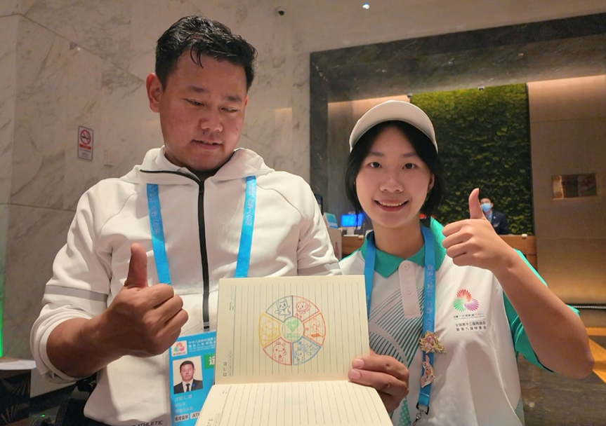 服务质量往往藏在细节里,我在一次次总结中,不断优化服务方式,力求让运动员们感受到温暖与便利。我们协助轮椅篮球运动员上下车,起初推行困难,后掌握借力技巧,获得公交工作人员夸赞。服务视力残疾运动员时,我们先询问需求,轻拍手背示意,再引导搀扶,并实时播报环境信息,如“前方左转有台阶”,为他们搭建安全感知网。我们以专业与热忱为运动员们保驾护航,而他们也用热情的回应,对我们说:“来到广东,我看到了中国的活力”,给予我们源源不断的能量与感动。