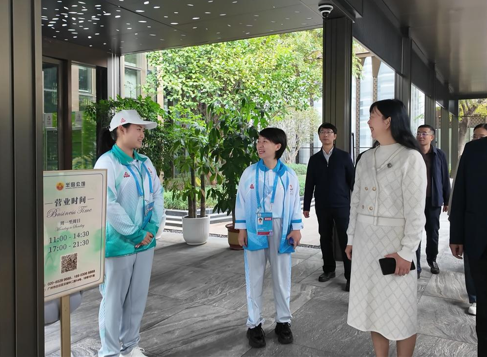 在团部官员驻地,葛书记和正在上岗的“小海豚”志愿者亲切交流,详细了解志愿者们的上岗情况。在运动员驻地,志愿者展示了如何引导和服务盲人运动员、轮椅运动员,他们围绕盲人运动员、轮椅运动员的核心需求,逐一演示了标准化服务流程:引导盲人运动员时,志愿者步伐缓慢平稳,每遇转弯、台阶便提前轻声提示,全程保持耐心细致的解说;协助轮椅运动员时,他们熟练完成轮椅固定、装备搬运、场地坡度适配等操作,动作精准规范且充满温情。