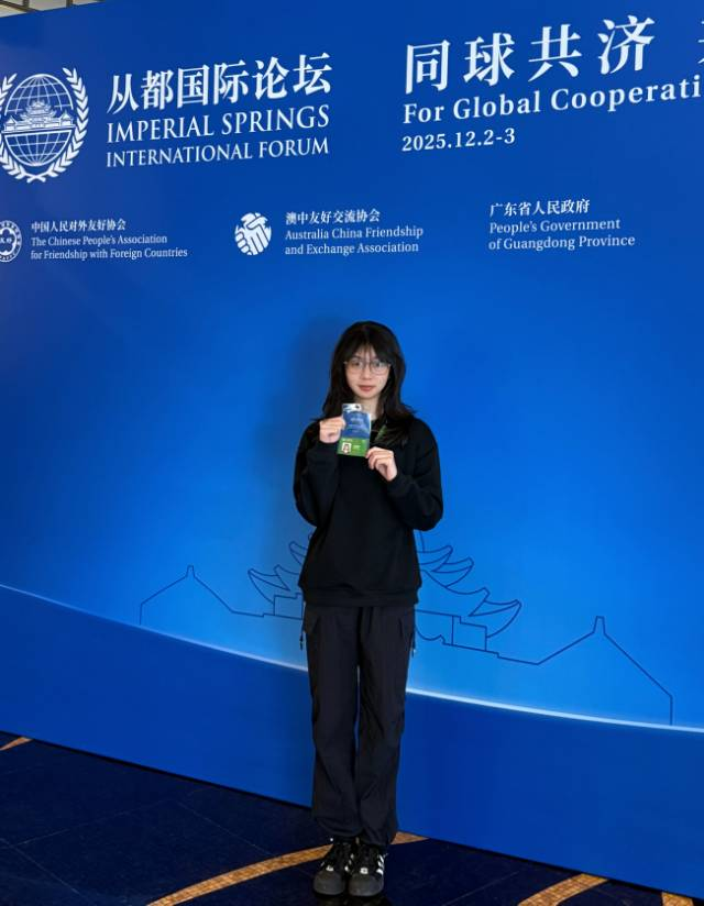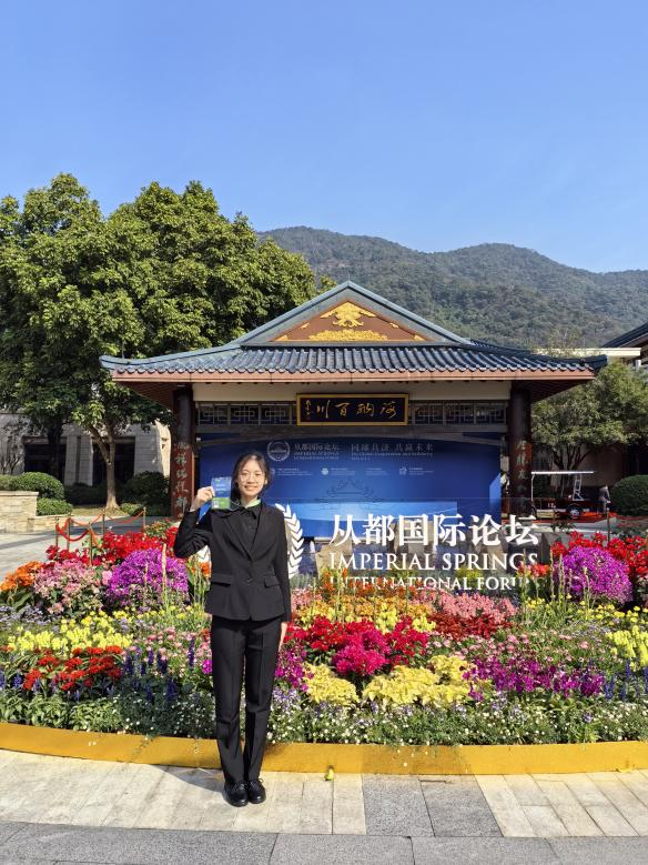 “我是2025从都国际论坛外宾组的成员,通过这次活动,我第一次真切地感受到一个国际会议的成功进行,是背后无数个工作人员夜以继日的努力所托举而成。作为外宾组的一员,我能够在前线接触到很多政要、专家,在一次平行论坛的茶歇期间,非常健谈的保加利亚前总统罗森·普列夫内利埃夫分享了很多对当前国际经济的看法,让我上了一堂受益匪浅的课。这次活动是我在实践上走向世界的一个意义非凡的起点。”