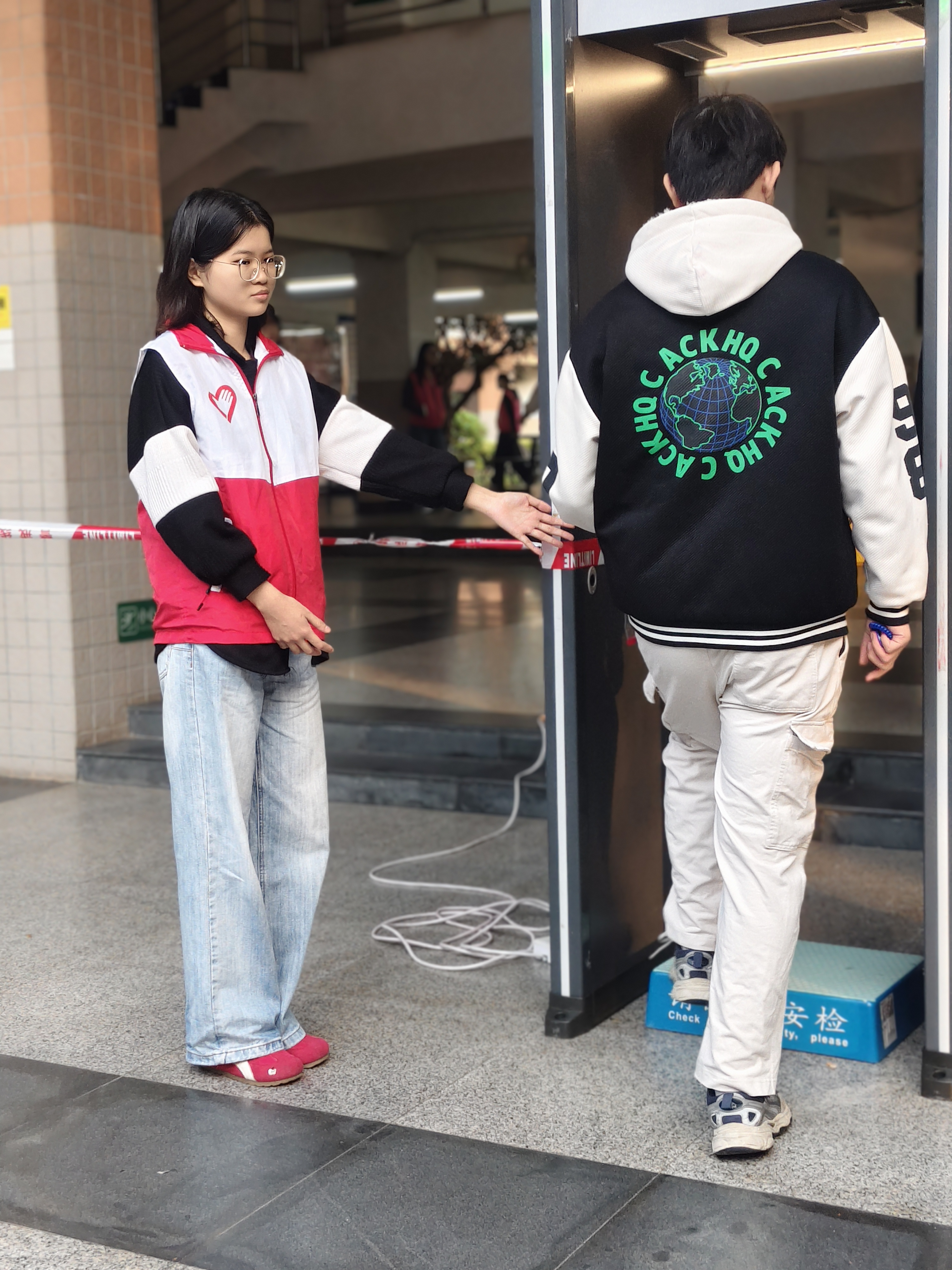 “这是我第一次以‘组长’的角色参与志愿活动,对我来说既是锻炼也是挑战,更是一种责任。”中国语言文化学院的本科生胡舒欣是考区各出入口值守的组长,作为大一新生的她第一次担当起组长的责任。在志愿服务过程中,她统筹组员分工、引导考生有序通过考生通道入场和维持出入口秩序。“在这个过程中,最让我印象深刻的是有个别考生找不到自己考场而向我们求助,面对他们因紧张出现的情绪波动,我学会了用温和的语言和细致的解释去帮助他们。“这也让她懂得了志愿服务远不止是维持考场秩序那么简单,更是稳住考生情绪,保障考生能够顺利考试。
