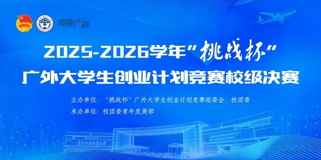 2025-2026学年“挑战杯” 广外大学生创业计划竞赛深入学习贯彻党的二十大精神,紧扣“百千万工程” 重大战略部署,以“挺膺担当新时代,青春奋进新征程”为主题,组织动员广外青年学子立足广东发展大局,为推动高质量发展注入青春智慧与力量,全力护航大学生创新创业实践。