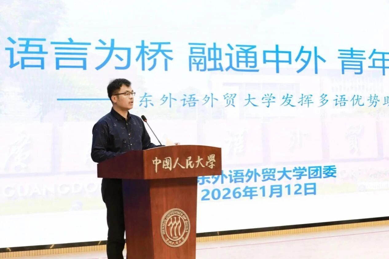 在青年外交高校联盟工作交流环节,刘郎书记作为六所高校(清华大学、中国人民大学、复旦大学、中国政法大学、广东外语外贸大学、黑龙江大学)代表之一,以《语言为桥、融通中外、青年担当——广东外语外贸大学发挥多语优势助力青年外交》为题作主题发言。刘郎书记详细介绍了学校“人才培育、实践赋能、品牌塑造”三位一体的工作体系。他表示,广外将深化“语言+外交+实践”融合的模式,让更多青年在国际舞台上传递中国声音、讲好中国故事。