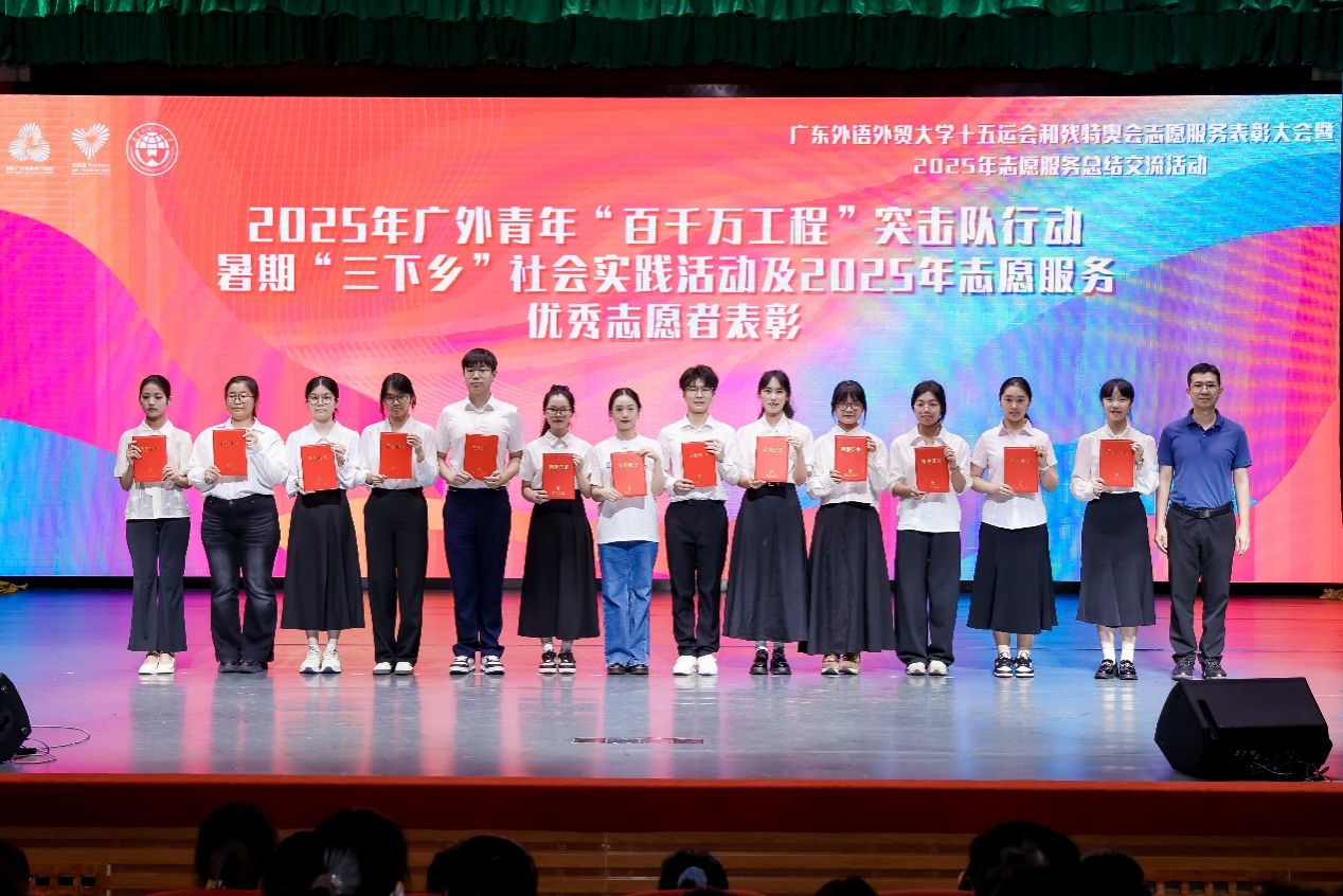 会上依次颁发了多项荣誉:“十五运会和残特奥会志愿服务先进工作者”“十五运会和残特奥会优秀志愿者”“2025年广外青年‘百千万工程’突击队行动、暑期‘三下乡’社会实践活动先进组织单位”“2025年志愿服务先进集体”,以及年度志愿服务优秀志愿者,以此表彰先进、凝聚力量,传承志愿精神。