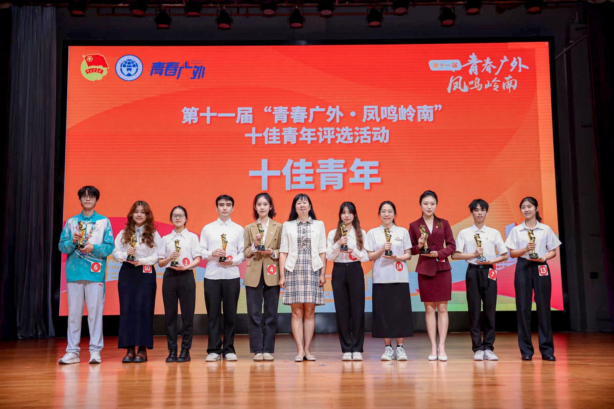 第十一届“青春广外·凤鸣岭南”十佳青年终审答辩以“挺膺担当启新程,青春建功‘十五五’”为主题,17名候选人依次登台,围绕乡村振兴、思想引领、学术科研、志愿服务、创新创业等领域,结合自身成长经历与奋斗故事,进行精彩展示与现场答辩,充分展现广外青年扎根基层、服务社会、奋发向上的精神风貌。