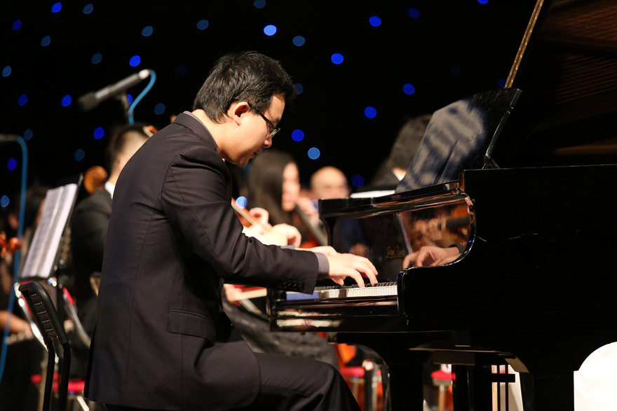 随着《黄河》的曲调缓缓响起,钢琴声仿佛将我们思绪,带回黄河遥远的源头。钢琴协奏曲悠扬又轻柔、欢快又明亮,犹如河水叮咚、潺潺流淌。当歌曲进入第四乐章,曲风转变,气势雄壮如万马奔腾。直击人心,震撼不已。淦楠老师激情澎湃的钢琴弹奏、校管弦乐团专业有素的演奏,让我们身临其境,体悟黄河乐章的魅力。