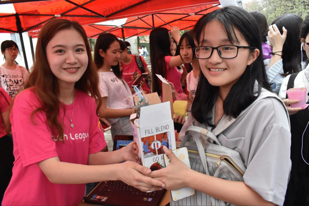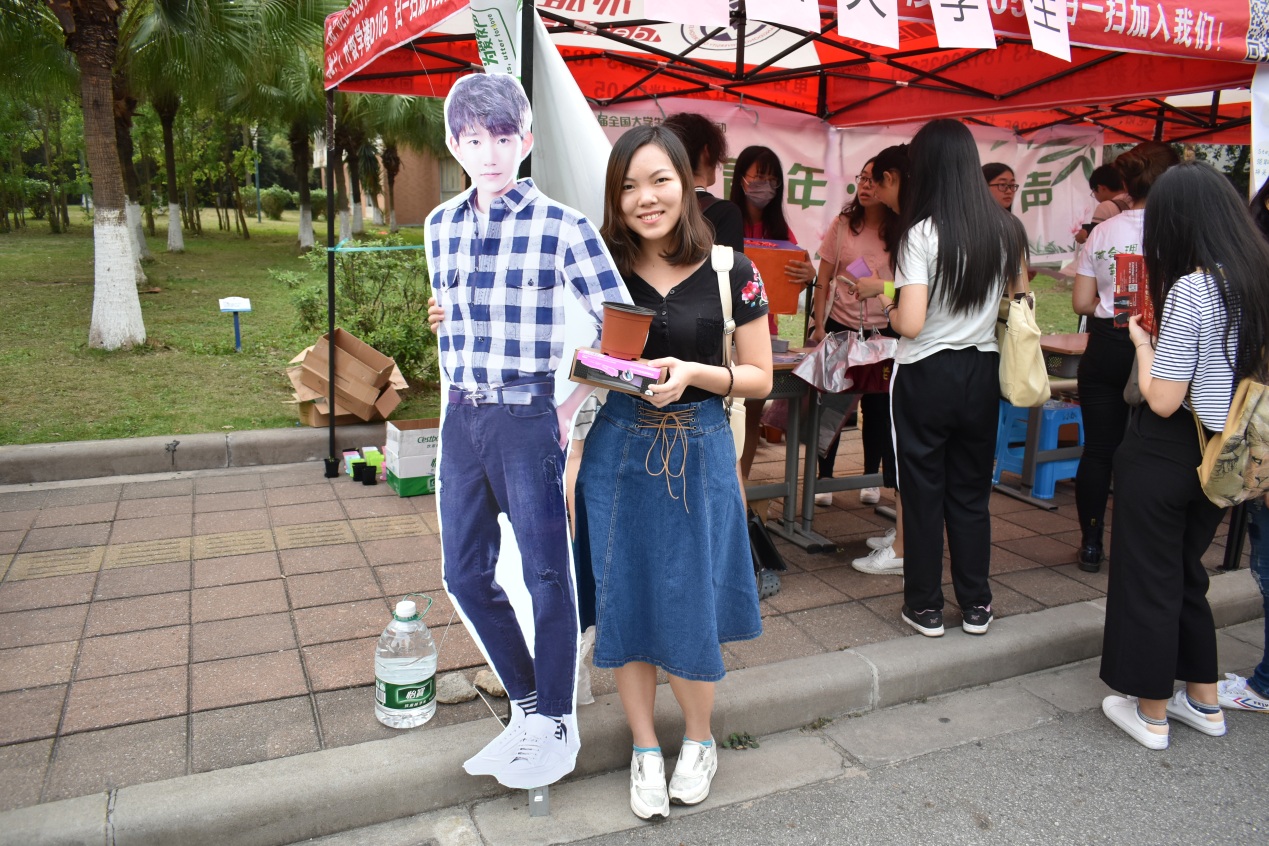 随后,不少参与者和“绿色大使”王源的人形展板进行合影留念,而在此期间工作人员也积极向同学们介绍公益环保的相关知识,希望将绿色低碳这一观念传递下去。在活动间隙,记者们也对参与学生进行了采访。大多数同学觉得这是一个很有意义的活动,将礼品与公益相结合,达到了一个寓教于乐的效果。