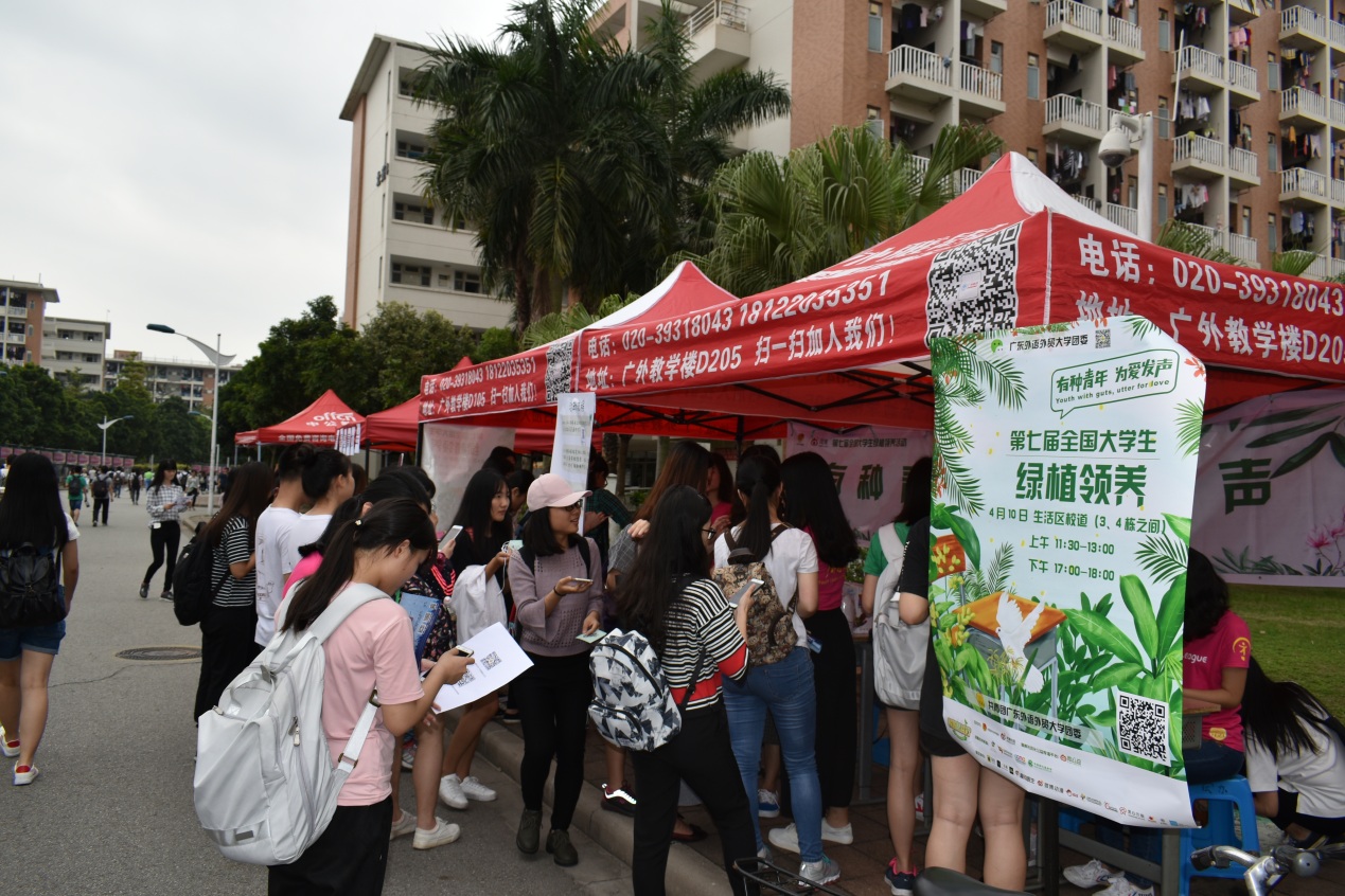 本网讯 倡公益,我做起!4月10日上午,广东外语外贸大学绿植领养活动于南校区校道和北校区12栋前顺利开展。该活动的宗旨是鼓励大学生参与绿色植物种植活动,传播绿色环保观念,低碳环保的大学生活从一棵小种子开始。