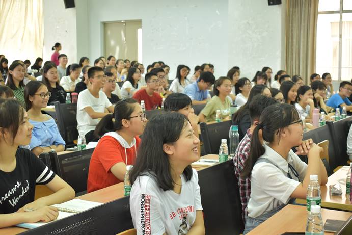 在简单的介绍之后,苏奕书记以共青团成立95周年为切入点,简要阐述了共青团在革命战争时期,改革时期的历史,并列举了共青团创办的如希望工程、志愿服务等一系列活动。他指出,共青团是拥有光荣历史、为青少年提供机会的平台。他将共青团的四大职能——“凝聚青年、服务大局、当好桥梁、从严治团”与校团委的各个部门联系起来,分别提出四个职能的内容和要求,并从四大职能出发,发问团员、团干该如何实现共青团的作用。苏奕引用隋校长的在新生大会上阐释的“卓越、诚信、包容、自信”广外价值观,谈及自己对该价值观的理解,提出对新任学生干部未来工作的建议。接着,苏奕书记讲到“希望”一词,他送出一句话,“在山下领略不到山顶的风景”,希望新任学生干部能专注、坚持,通过校团委,提升自己各方面的能力,变得更优秀。最后,他以一句“与时代同行,与青年同心”与大家共勉,引发大家深刻的思考。