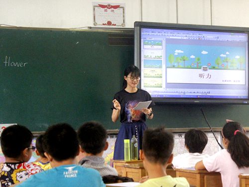 各班的班主任还未进课室,小朋友们已端坐在座位上,或是捧起从家里带来的新概念2,或是对着黑板上字迹未完全抹去的单词,自发地开始了早读。无论是笔直的坐姿,还是朗朗的书声,都反映了博爱小学的小朋友们学习英语的无上热情和深厚兴趣。看到这熟悉的早读场景,老师们回忆起小学的那段稚嫩而纯粹的读书时光,并坚信,只要同学们保持着这股热情,定能在接下来十几天的英语夏令营中有所收获。