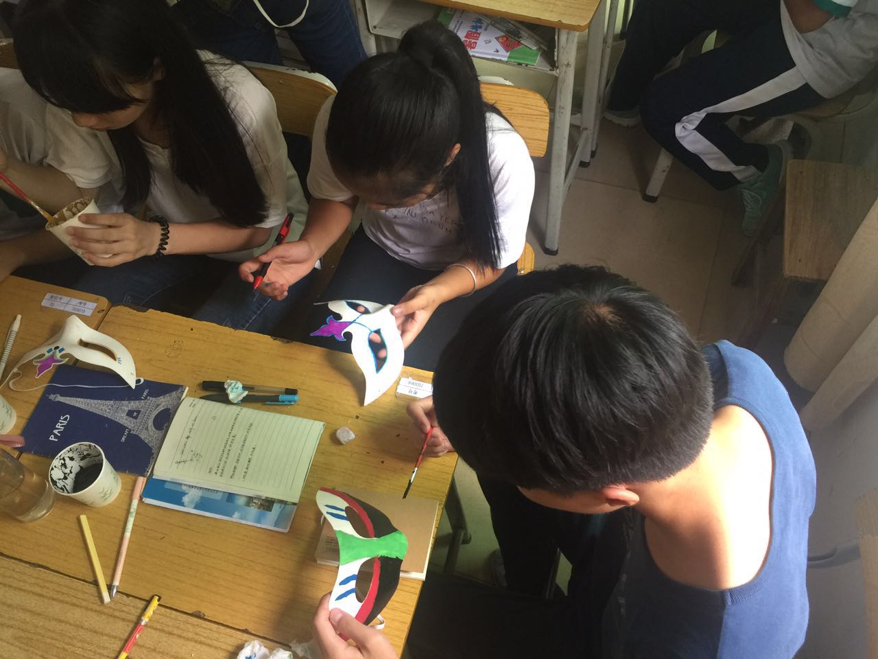 今天下午,新晴的班主任唐颖老师带着七年2班的小朋友上了一节充满浪漫色彩的美术课,让小朋友们动手用颜料去画面具。