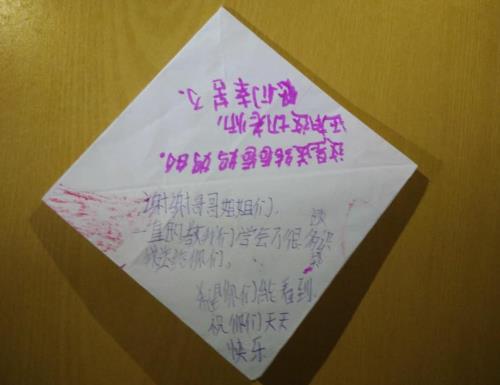 今天上午,义教组依然给小朋友们上课,分别是国际象棋、美术课和手工折纸课。在手工课上,一个小朋友亲手折了一个爱心送给全体队员,并写上自己的谢意和祝福,队员们在看到折纸的时候,都被小朋友的天真浪漫和真诚的爱感动到了,这种细腻又温馨的情感让队员们觉得一切的努力都是值得的。