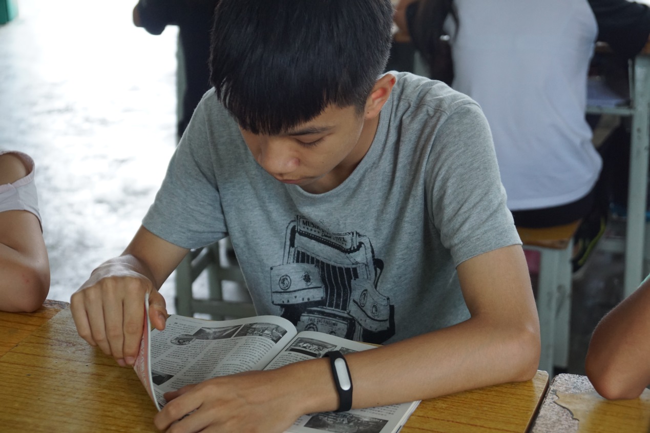第一期的“悦”读分享会在7月15号开展,种类众多的书籍立刻吸引了同学们的注意。每个人在选取自己喜欢的书籍后立刻聚精会神的阅读了起来。负责管理纪律的老师说:“学生开小差的情况在这一节课少了很多。”各班班主任在讲台上负责组织学生阅读书籍,并组织学生们交换所读的书,以便提高阅读量。