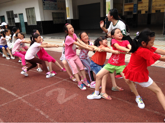 从摸石头过河,到50米赛跑,再到二人三足、拔河,最后的躲避球,我们把竞争与合作的理念以比赛的形式输入到孩子们的心中。看着孩子们为胜利而不懈拼搏的勇往直前,在艰难前面的不服输、一致对外的合作互助,我们明白,这些比赛的初衷,已然达到。