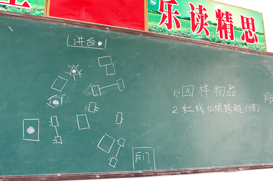 “盲人”在“导盲者”的引导下从教室后门进入,按照规定的路线,一步步摸索着找到老师们提前放置好的四样物品。在整个过程中,“导盲者”只能通过言语引导,不能有肢体接触,这给孩子们完成任务制造了困难。孩子们在过程中偶尔面露难色,言语变得急躁,但是都能够迅速调整过来,配合好完成了任务。老师们都等着前门出口处,为完成任务的孩子们送上鼓励。