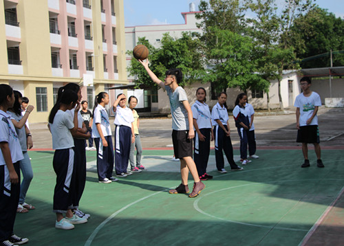 清晨的阳光洒在十六岁的孩子们身上,热身的跑步,汗水的挥洒,新的一天又开始了。体育老师主要讲解的课程是篮球,与担心的的不同,女生们都表现出一定的兴趣与熟练程度。首先教授了传球动作的正确手势、手形,并给予学生时间练习熟练。之后的传球、运球、投篮讲解,渐渐完成篮球的基本。为了尽量让每一个学生有练习的机会,老师将学生们分成两列纵队,接力投篮,你来我往。之后更是有女生向老师发起挑战,以六对一的形式进行了一场比赛,六名女生,有的挡人、有的传球、有的投篮,秩序井然,默契十足。