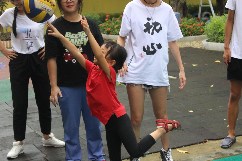 本网讯 2016年7月20号早上,外交学社“火种”三下乡服务队在东莞塘厦米奇幼儿园的操场组织了一场趣味运动会,带小朋友们体会运动的快乐。
