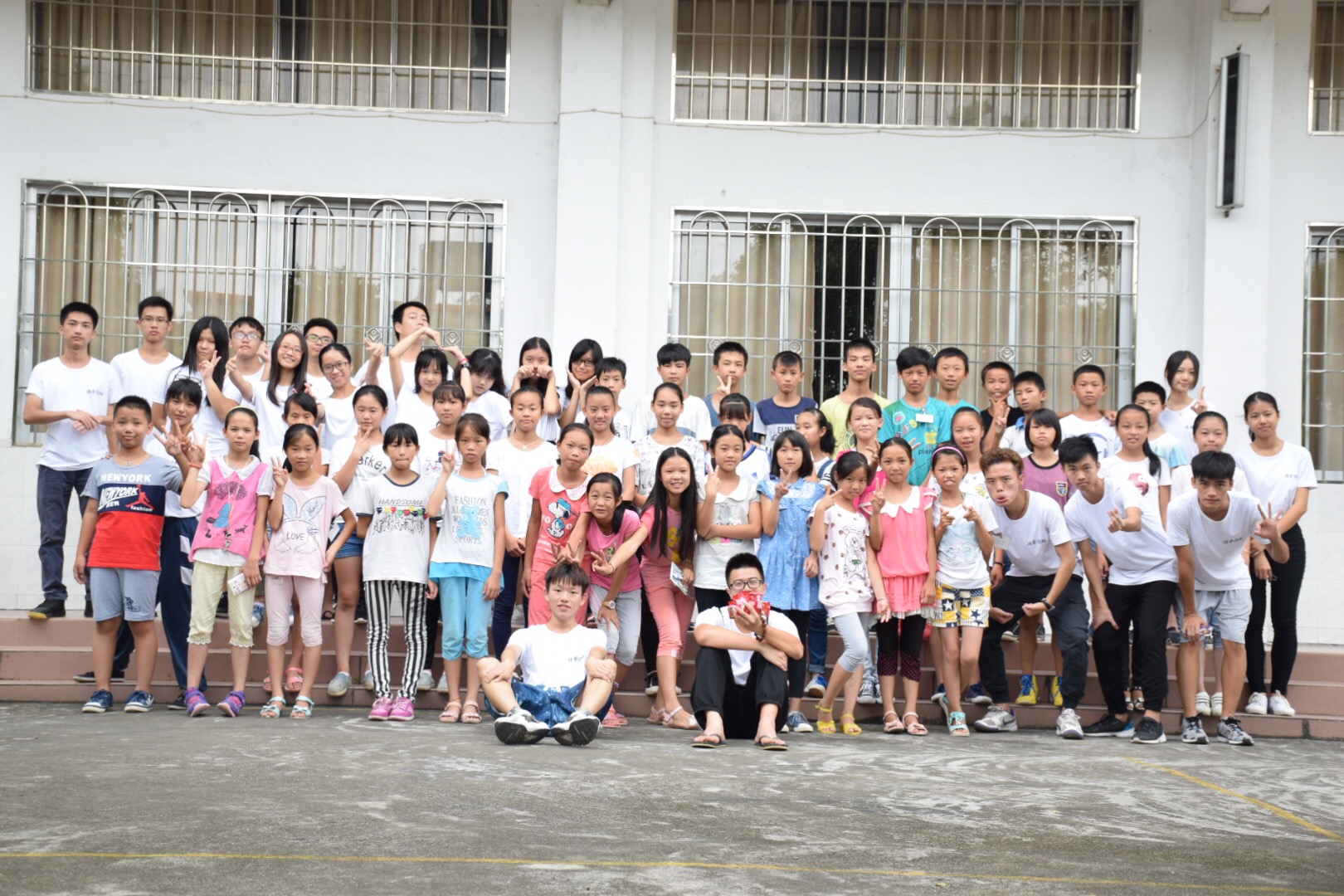 最后,老师们与同学们进行大合照。一张张早已熟稔的笑容在教学楼前、树荫下、阶梯上尽情绽放。大家有爱地摆着各种姿势,竭力想保存下大家分离前的最后一刻模样。