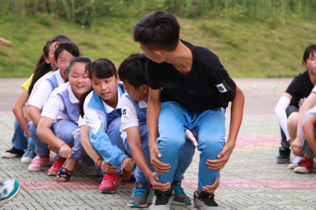 第二个游戏:蜈蚣赛跑。一个组的同学要用手抓住前面一个同学的脚踝,以此类推,然后整个小组的成员一起进行赛跑,队伍的最后一个同学抵达终点就算完成赛跑。