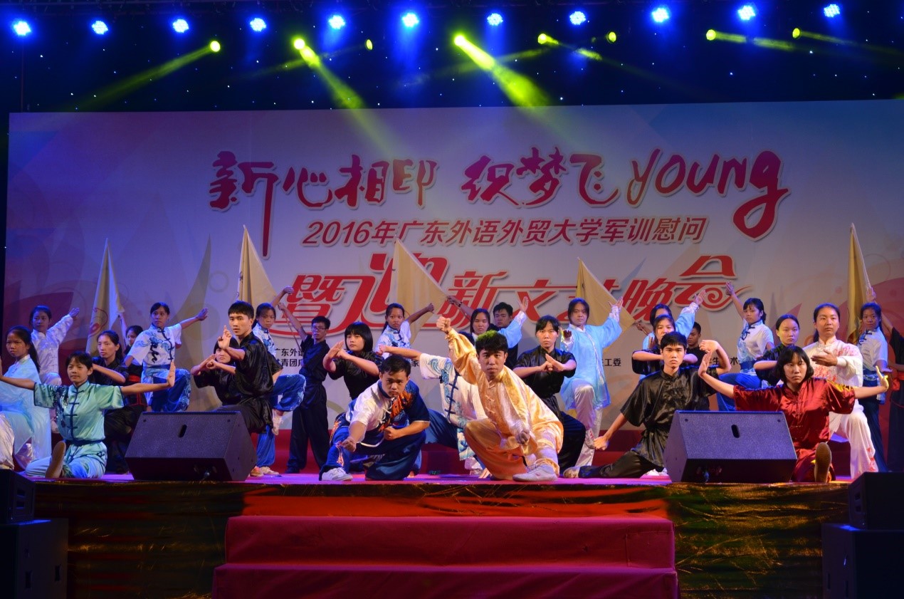 同时,从始至终,新生们一直在微信墙上发表他们自己对节目的看法或是对教官的不舍,本次晚会真正做到了与新生的完美互动。最后,晚会在广外校歌中落下帷幕,新生们虽然不舍,但还是在教官的带领下有序地离开了体育馆。