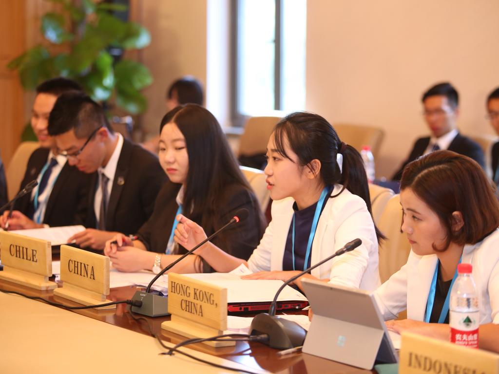 其中,在模拟APEC教育部长会议上,我校学子深度参与探讨第六届APEC教育部长会议的主题合作内容。我校李文灏代表太平洋岛国理事会就“在教学过程中加强教育及科技能力”提出了自己的见解,认为应该设立一个APEC专属电台,传递APEC的声音;我校黄桂桃代表中国香港、梁振轩代表东盟秘书处在第四场会议中就“加强政府-工商界-学界关于研究创新方面的合作”发表讲话。其中梁振轩提出要整合东盟与亚太经合组织下辖的项目组,避免资源的浪费;我校杨楚琳、杨家玮分别代表中国及日本就“加强从教育到工作的过渡”进行了磋商,杨家玮认为要加强工作本位学习及跨境教育合作。全天会议结束后,各代表达成共识,大会形成《青年声明》,该声明将上交至第六届APEC教育部长会议。