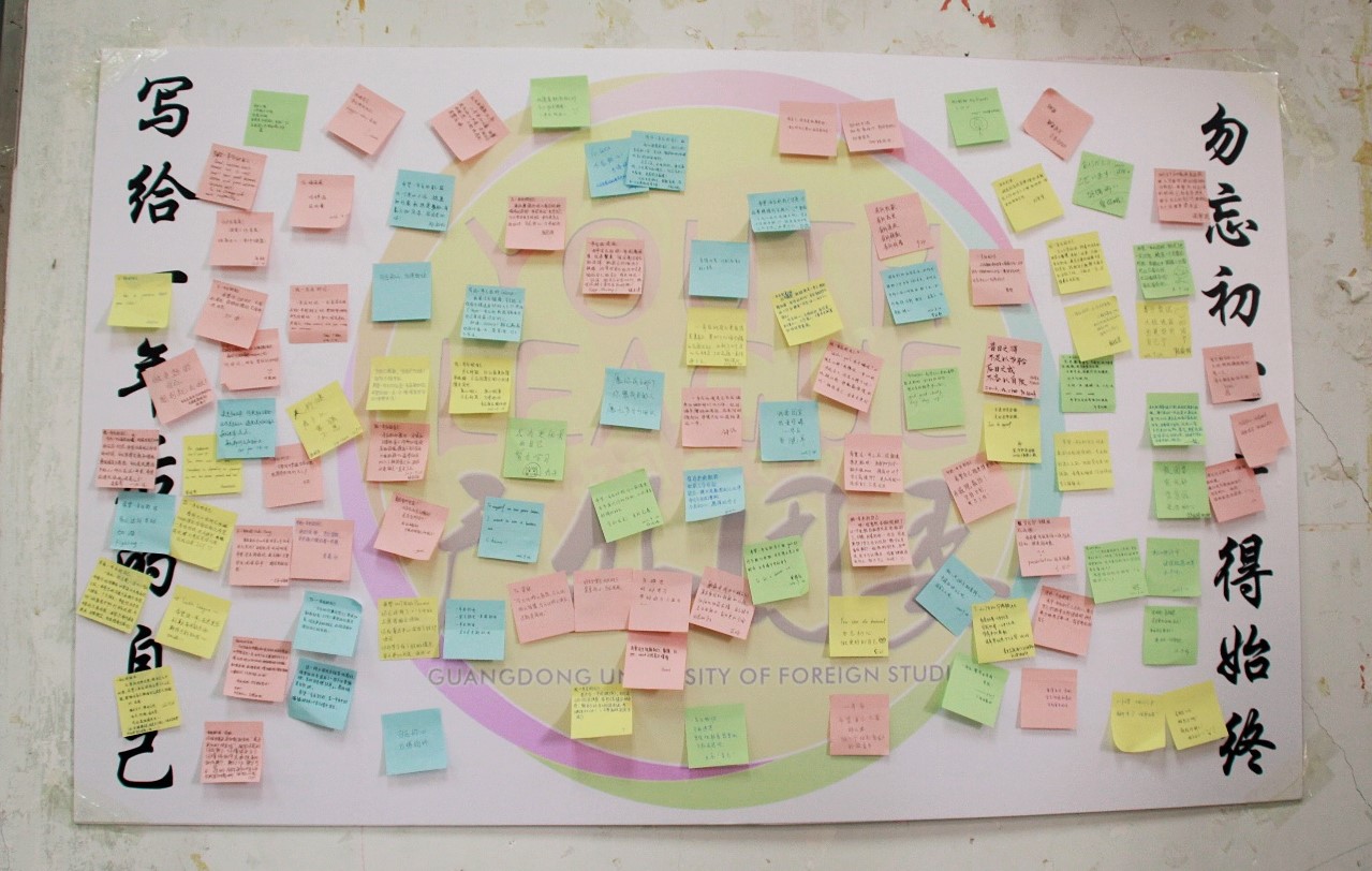 作为此次的新增环节,我们的约定以及便利贴环节增加了成员的参与度和带入感。新老成员们跟读7条誓词,再次在心中强调了集体的荣誉感、个人的责任感以及学习上进的精神。便利贴环节,成员们郑重写下想对一年后的自己说的话。
