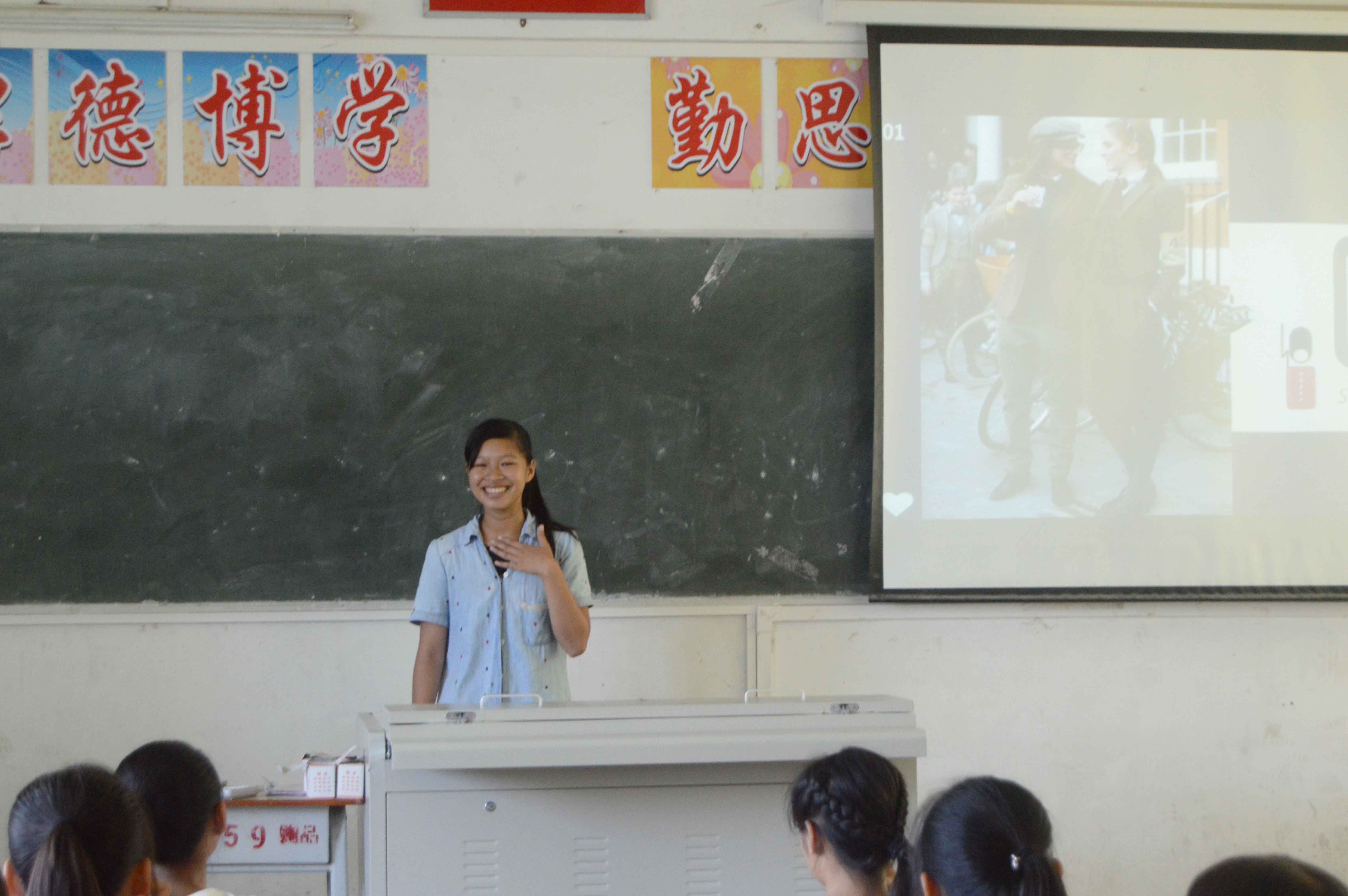 课程伊始,主讲翁子茵邀请同学上台用英语进行自我介绍,虽然刚开始时同学们还有些羞涩,但是在老师们的鼓励下,同学们都陆续鼓起勇气上台进行自我介绍。接着,老师在进行了简单的自我介绍以后,开始向同学们讲述英语的重要性,鼓励同学们在以后的课程里放开胆子说英语、积极说英语。