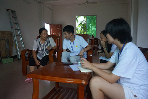 虽然下午的天气十分恶劣,小镇内停电长达2小时,多处主干道路积水,水深及膝盖。花young服务队的调研组队员在确认课题后,不顾艰险,汲水至该镇养老院展开调研活动。途中,甚至还有两名队员的拖鞋陷在淤泥中,无法找回。