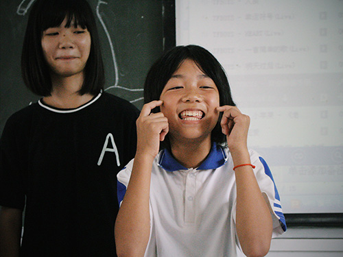 第一个玩的游戏是很传统的“击鼓传花”。虽然这个游戏已经很古老了,但是小学生们还是热情满满。音乐一开始,大家就飞快地将手中的毽子递到另一个同学手中,偶尔还能看见毽子在半空中飞舞。最后“幸运”的同学就要上讲台接受惩罚啦。是什么呢?原来是选择题,要么唱歌,要么做鬼脸。大部分接受惩罚的同学还是很有表演欲望的,不约而同地选择了唱歌,有两个同学很有幽默天赋地扮了鬼脸。第二个游戏叫“串名字”,这个游戏需要记住在自己座位前几个同学的名字,并流利地说出来。这可是很有难度的游戏啊,尤其是大家都不是很熟悉的情况下玩。小学组很快就坚持不下去了,初中组虽然过程磕磕绊绊,但是还是顺利完成了。