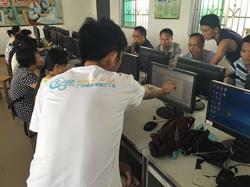 本网讯 2016年7月11日,广东外语外贸大学思科信息学院逐光盛夏三下乡服务队在梁村镇中心小学的下乡工作仍在继续进行,梁村镇的教师培训也于今日正式拉开了序幕。本次的教师培训意在帮助老师掌握幻灯片的制作,为他们以后的教学工作提供新的教学方式,同时将相关信息技术传递下去。