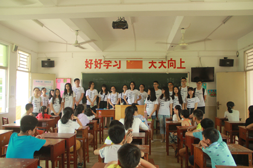 休息片刻,在下午三点,全体队员在教学楼三楼与即将一同度过未来十天的小朋友们进行第一次见面。一开始小朋友们对讲台上的哥哥姐姐的到来都十分兴奋,他们耐心地听完教学组各组员对自己负责课程的介绍,并多次献出他们真挚的掌声。继而,是ZING服务队队长丘丙源为本次开学仪式作简短总结,并由衷希望参加本次活动的小朋友们都能有所收获。仪式的最后,是队长和其余队员在课室里拍摄了简单的合照。