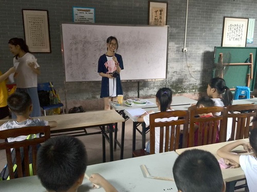 上午,我们迎来了两位“重量级”人物,分别是我们队伍的队长徐梓泳和宣传组组长谢家丽。在开始今天的活动前,梓泳和家丽各上台介绍了自己,并表达了对小朋友的美好祝愿。