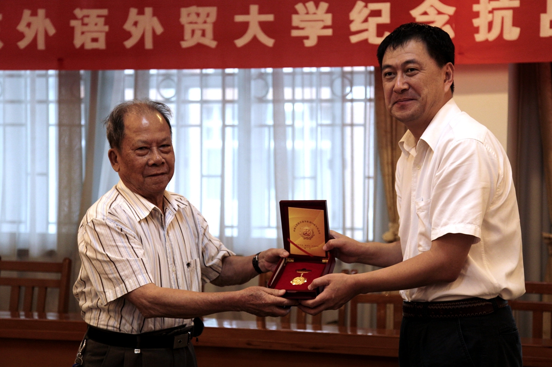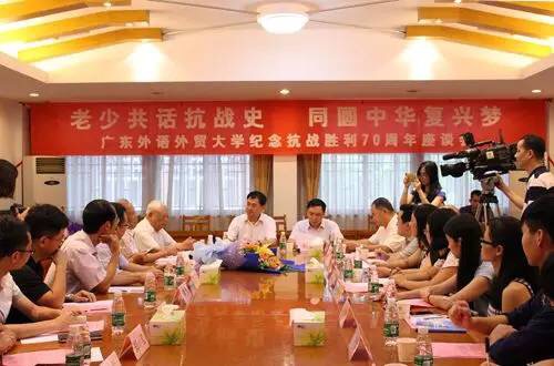 本网讯 9月3日,中国人民抗日战争暨世界反法西斯战争胜利70周年阅兵式在天安门广场隆重举行。为铭记历史、缅怀先烈、珍爱和平、开创未来,我校在第二会议室举行“老少共话抗战史,同圆中华复兴梦”纪念抗战胜利70周年座谈会,邀请了杨群、林涛两位抗战老英雄及校关工委的老同志向在场师生分享了他们抗战事迹和战争年代的别样经历。校党委书记隋广军、副校长刘海春及校党委宣传部、学生部(处)、校团委、学生就业指导中心、离退处等部门的领导和学生代表参加了此次座谈会。会议由校团委副书记(主持工作)苏奕主持。
