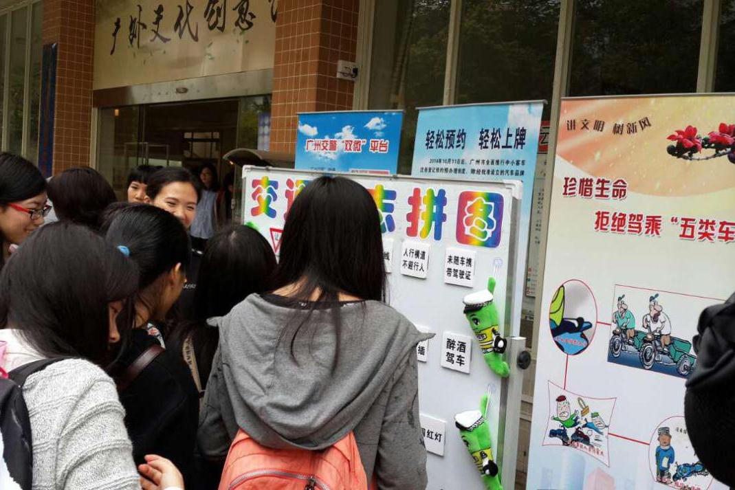 本次便民宣传活动主要为师生办理“网上车管所”现场注册业务、接受交管业务咨询、宣传展示交通安全知识和广州交警便民服务业务、开展交通安全游戏体验等,两场活动为我校师生办理网上车管所注册业务共240人次,派发交通安全宣传资料1000余份,接受交通安全宣传教育5000余人次。