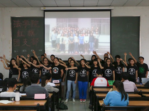 本网讯 4月9日下午,法学院14级红旗团支部评比大会在教学楼G207进行。在主题“与信仰对话”的指引下,14级各团支部依次上台展示本班在过往近一年内所取得的成就,争当具有模范带头作用的“红旗团支部”。