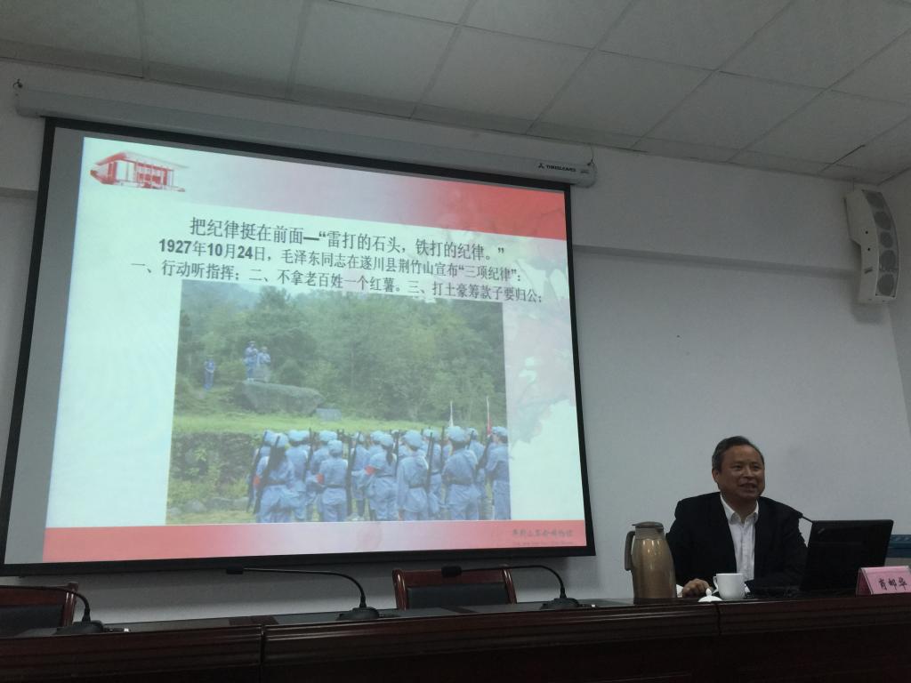 4月15号上午,井冈山革命博物馆原馆长、书记,井冈山干部学院、团中央井冈山基地兼职教授肖邮华为青马班全体学员作了题为《井冈山斗争与井冈山精神》的主题报告。肖邮华结合秋收起义、文家市会议、三湾改编、古城会议、茅坪安家、井冈山会师、革命根据地建设等党史知识全面系统讲解了井冈山斗争的概况,并着重阐释了胸怀理想、坚定信念,实事求是、敢闯新路,艰苦奋斗、身体力行,依靠群众、勇于胜利的井冈山精神内涵。肖邮华认为,当代大学生要发扬和继承井冈山精神,就要始终不渝地坚定理想信念,坚持实事求是的思想路线、艰苦奋斗的光荣传统和密切联系群众的优良作风,让井冈山精神放射出新的时代光芒。
