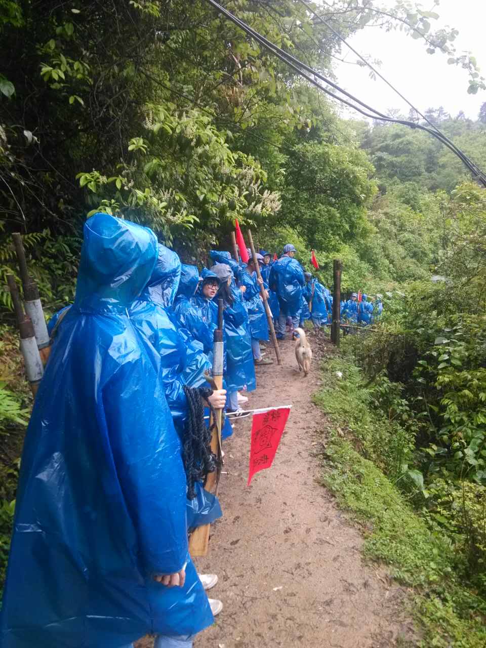 上午,青马班全体学员穿上红军服,戴上红军帽,肩扛枪,背挎包,冒着蒙蒙春雨来到井冈山坝上村,分成是十个小组,重走的红军当年挑粮小道,开展了为期半天的“急行军”拓展活动。中午时分,各小组到达指定地点,分赴坝上村农户家自做红军餐,体验红军当年自力更生、艰苦奋斗的生活场景,并开展了入户调查活动,详细了解当地经济发展状况,深刻体会到井冈山人民对党的深厚感情。