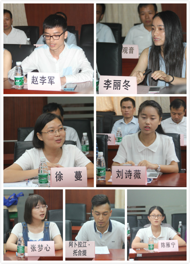“三支一扶”、西部计划及研究生支教团毕业生逐一进行发言,表示到基层服务、到西部奉献,是参与祖国建设和实现自身价值的结合和体现,到了服务地后一定脚踏实地的服务,认真勤恳的学习,弘扬广外精神,展现广外人风采。