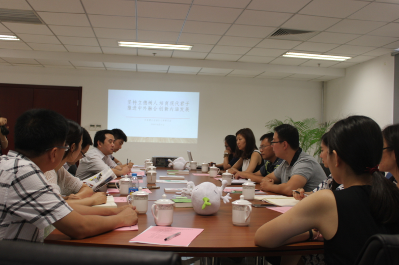 北京语言大学党委副书记刘伟、学校办公室副主任许豪、校团委负责人杨天乔及校团委一行工作人员热情欢迎调研组的到来并展开充分的交流。校团委负责人杨天乔针对北京语言大学的共青团工作进行经验介绍,突出展现了北京语言大学在留学生管理方面的突出表现。随后双方就留学生管理、新媒体传播、社会