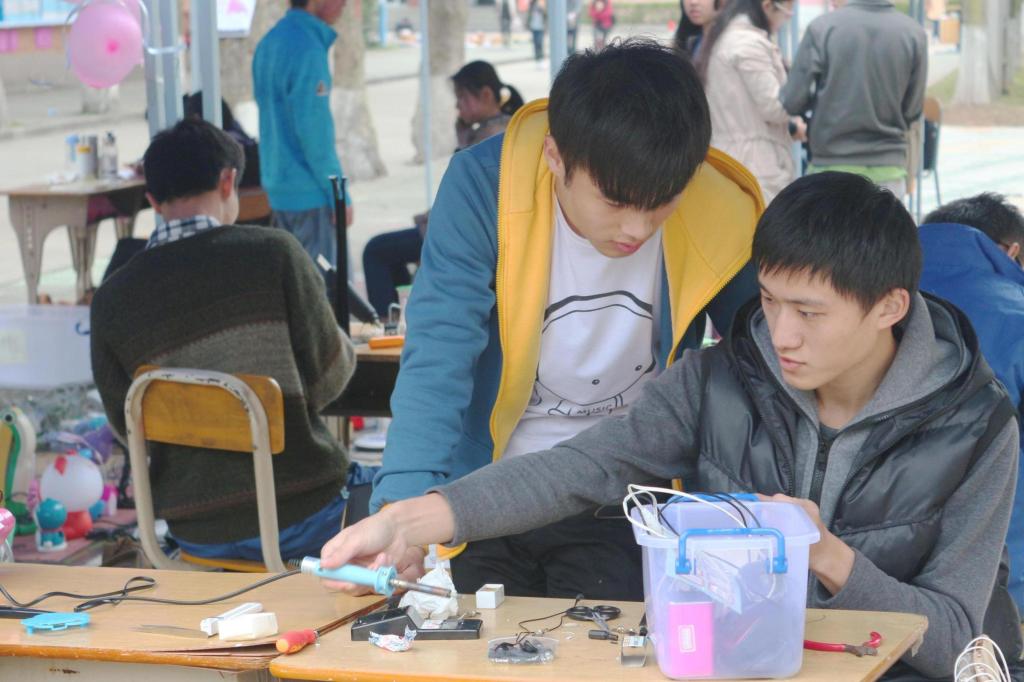 上午九点,义修活动正式开始。微冷的天气依然阻挡不了同学们参与活动的热情,活动刚刚开始就已经有同学纷纷拿来了自己损坏的电器。随着时间的推移,参与活动的同学们越来越多,要维修的电器数量也随之上涨。但是义修队员们仍旧认真地检查电器的故障部位,没有一丝不耐烦的神态。在他们精湛的技术帮助下,上午活动结束之时,已经有很多同学领走了自己修好的电器,他们都表示,很感谢义修队伍的帮助,很期待明年义修活动的到来。