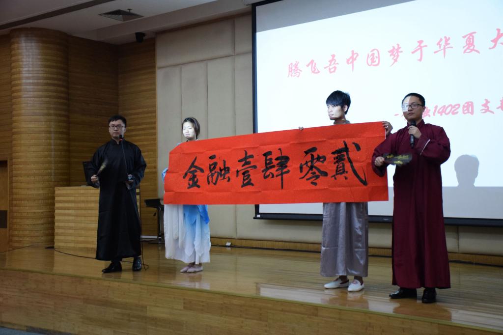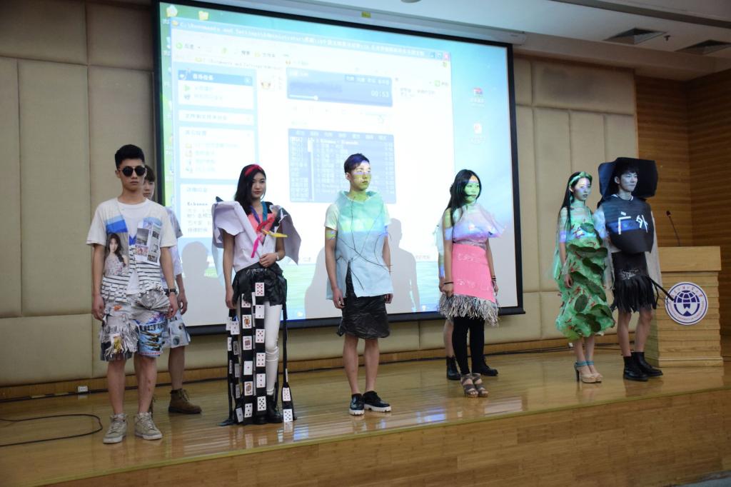 评审会现场,各基层团组织各显神通,通过书法、歌舞、情景剧、DIY服装秀等形式,生动展现了团日活动的成果,引得现场掌声连连。金融学院金融1402团支部的同学现场讲起了相声,将本团支部活动以新颖幽默的方式进行展现;公开学院国际商务系团总支更是以现场时装秀的方式,展现了他们“环保”的团日活动主题。据了解,各模特身上的时尚服装全是用同学们在白云山上捡的废弃物设计加工而成。