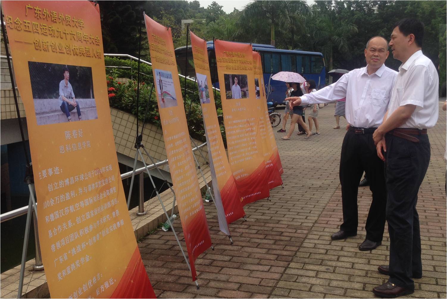 隋广军、卢景辉观看我校“创新创业创优”典型人物宣传展