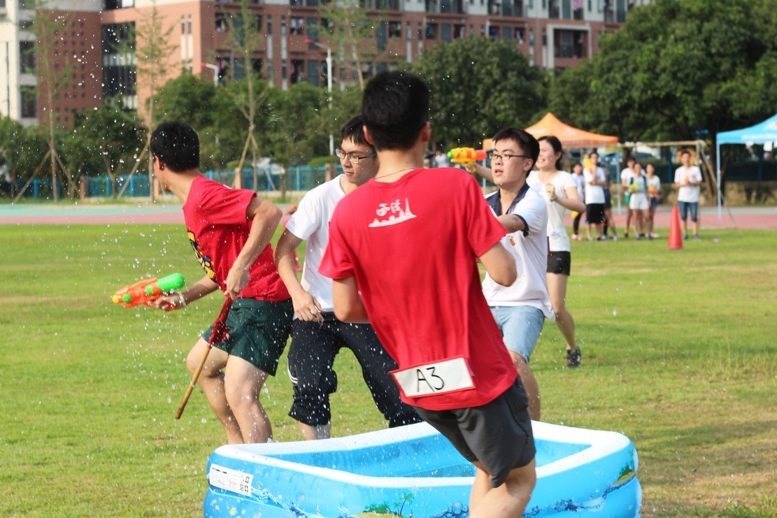 在环校跑结束之后,主办方还特别举办了运动嘉年华,以增加活动的趣味性。同学们在游戏过程中欢笑不断。除了有让师生们“嗷嗷”大叫的指压板跳绳,还有非腰力好者不可为的集体下腰过杆。最受欢迎的当然要数撕名牌大战了。为躲避对手、保护队友,大家可谓卯足了劲儿,有些同学甚至一改从前斯文的模样,摇身一变成了团队的守护神。在运动嘉年华里,他们收获的战友般的友情和凝聚力,想必会牢牢印在他们的心里。