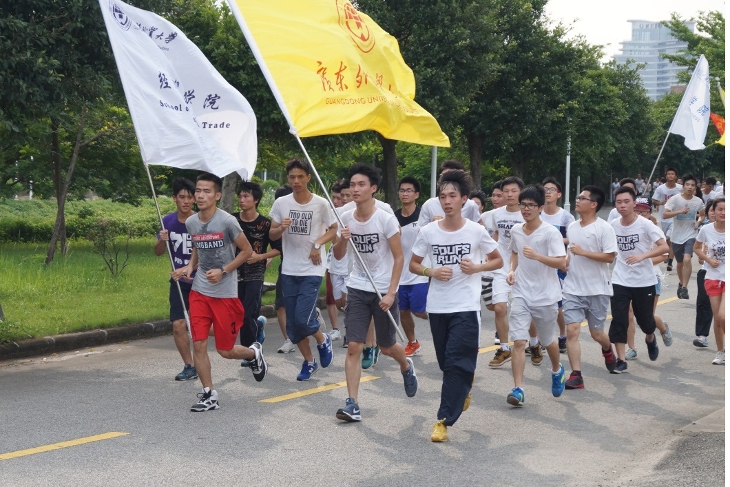 GDUFSRUN环校跑活动以“奔跑吧,广外人”为口号,旨在为建校50周年营造氛围,鼓励师生们多参加课外锻炼,多运动,放弃宅生活。卢景辉、刘建达分别在北校、南校活动现场发表讲话,希望每位师生知校、爱校、荣校,通过环校跑活动更进一步感受广外的历史和文化,感受运动的快乐和魅力,增强广外人的主人翁精神和凝聚力。