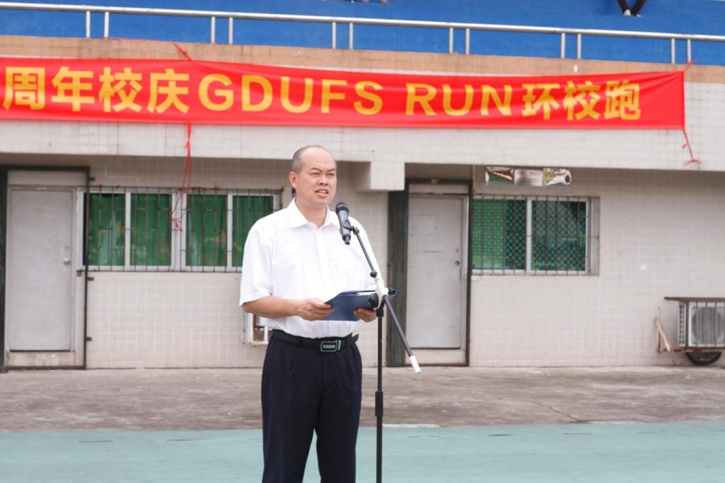 本网讯 5月28日下午,由校团委、校体育部和校学生会联合主办的50周年校庆系列活动之“奔跑吧广外人”——GDUFS RUN环校跑活动在南北校区同时开展。校党委副书记卢景辉、副校长刘建达、体育部党总支书记李旭武、校团委副书记(主持工作)苏奕以及校团委副书记余海波分别出席南北校区活动,近千名师生参加了环校跑活动。