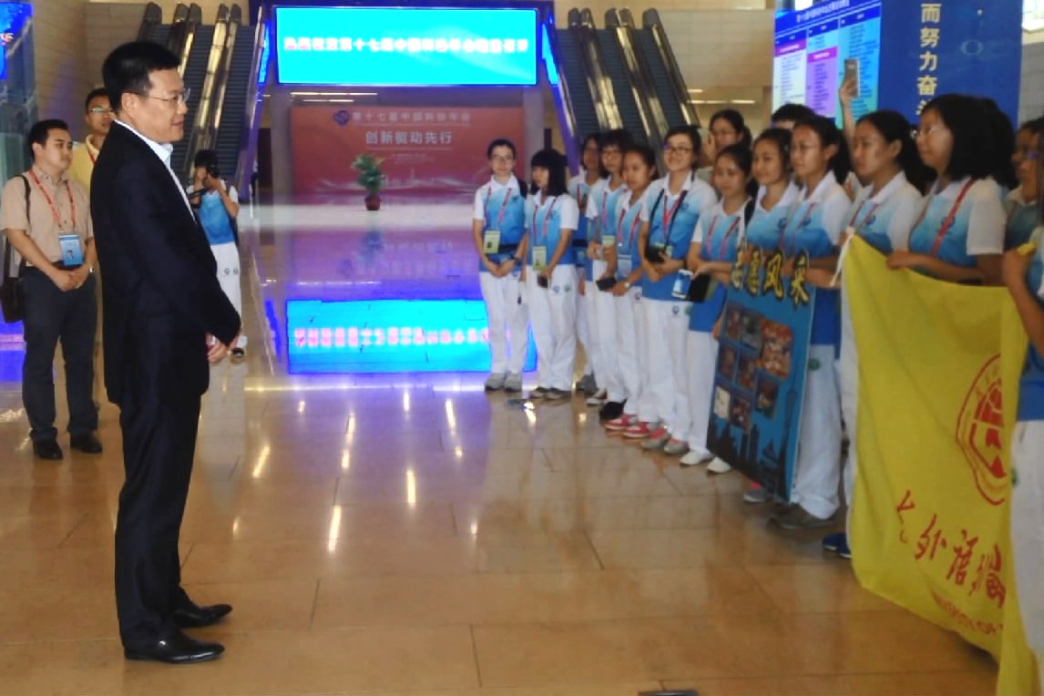 仲伟合与我校科协年会志愿者合影